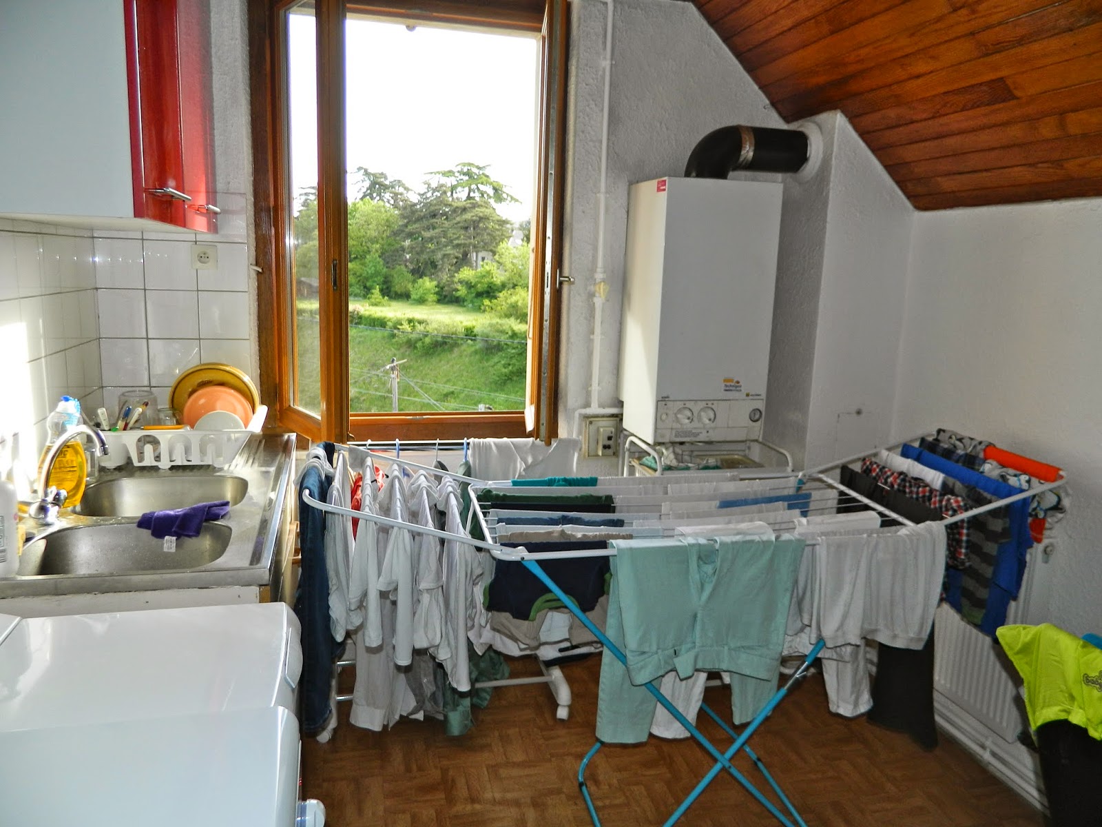 How to shower in a bath tub- This was probably the weirdest thing to get use to. We have a bath tub and a handheld shower... but no curtain. Basically you shower sitting down... juggling the scalding or freezing water. My morning routine takes much longer here.